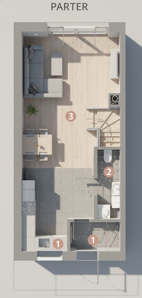 . domy w zabudowie bliźniaczej (tylko 2 lokale w budynku)