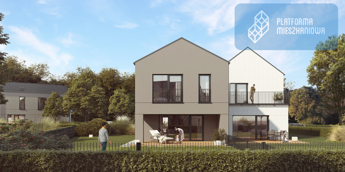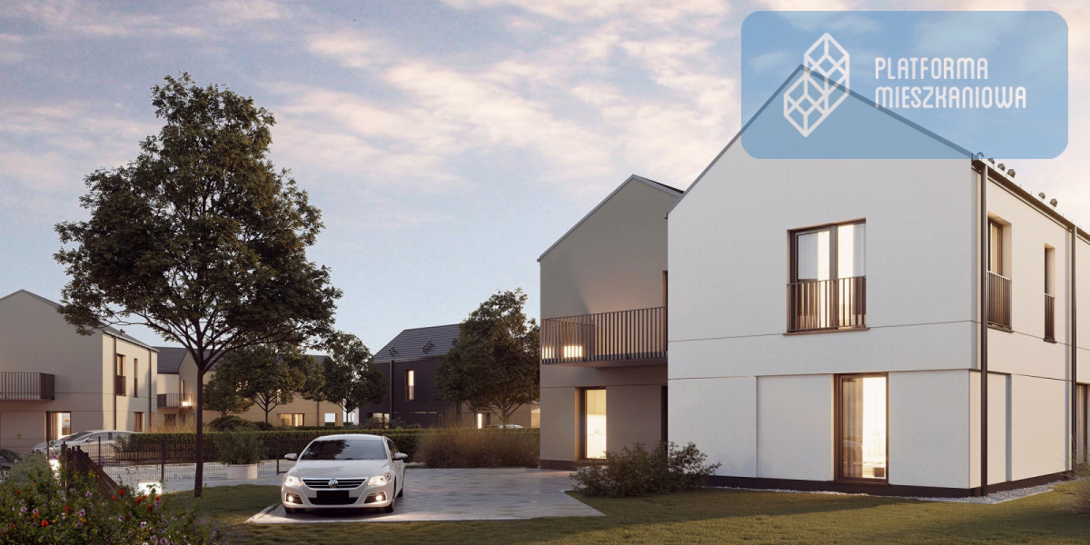 Każdy dom posiada balkon oraz miejsca postojowe na podjeździe posesji.
