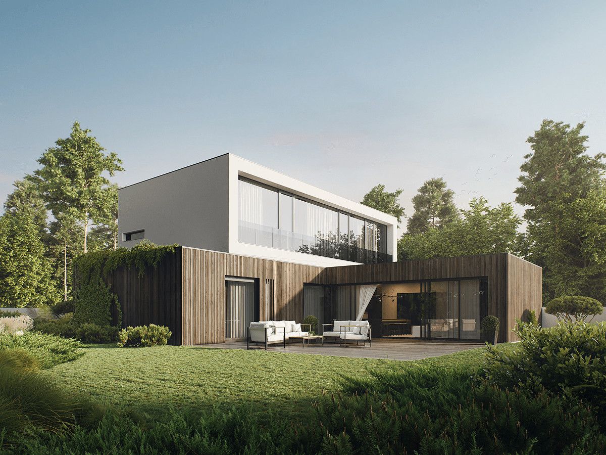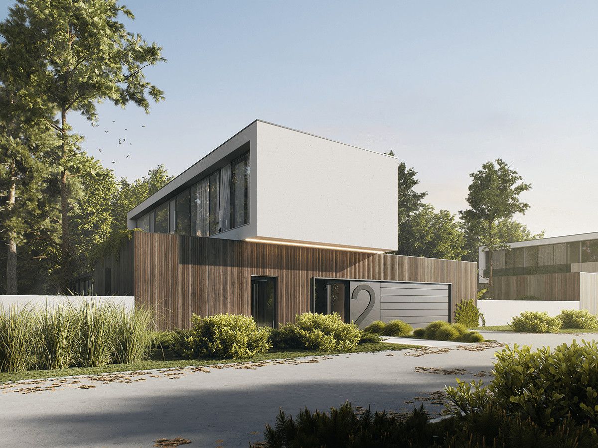 Dom znajduje się w kameralnej inwestycji składającej się z pięciu wolnostojących willi, zaprojektowanych z myślą o prywatności mieszkańców. Dwa z nich zostały już sprzedane.