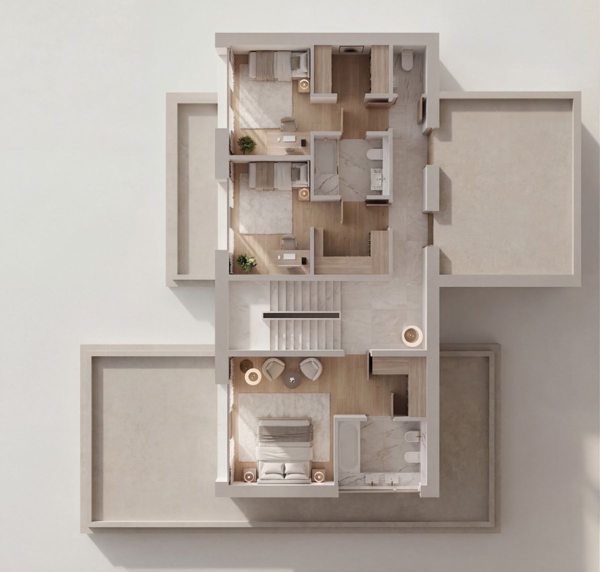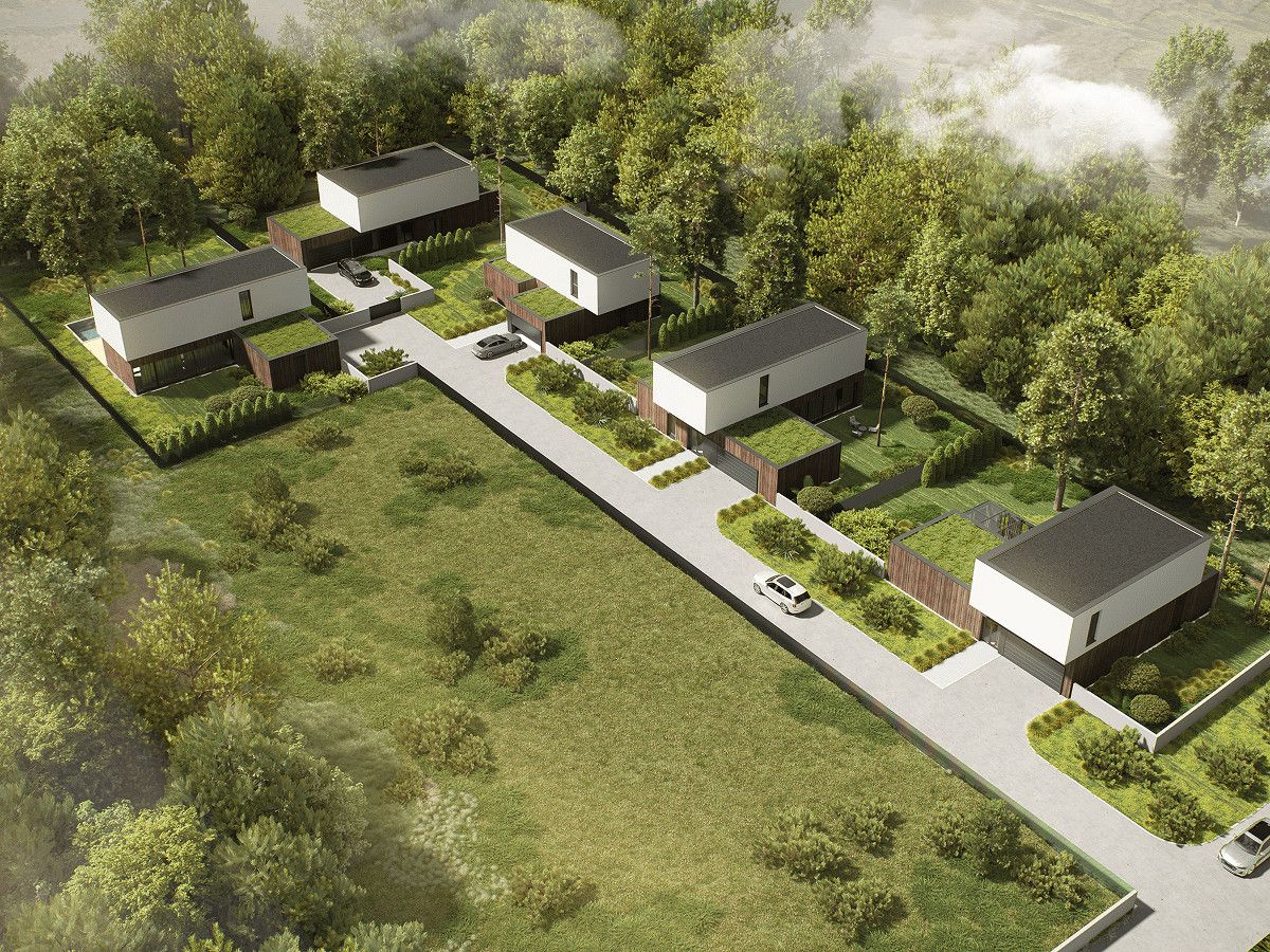 Inwestycja obejmuje zaledwie pięć wolnostojących willi, z których każda posiada własną działkę oraz prywatną przestrzeń ogrodową.