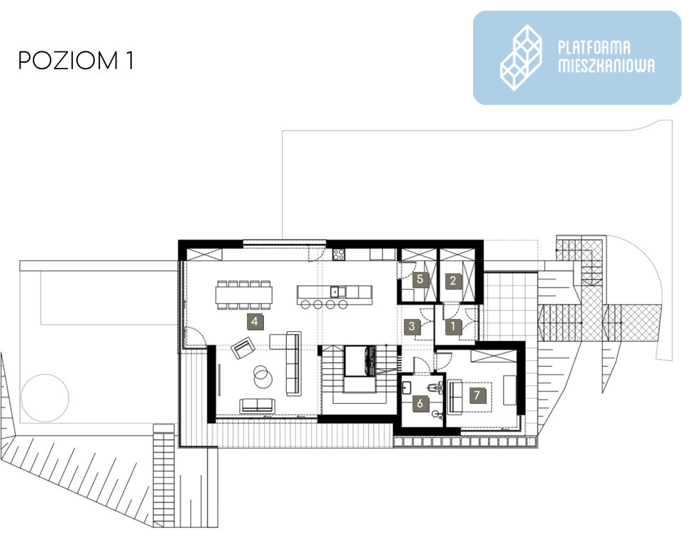 Wyraźny podział na strefy: reprezentacyjną, prywatną i rekreacyjną - jak w rezydencjach międzynarodowej klasy.