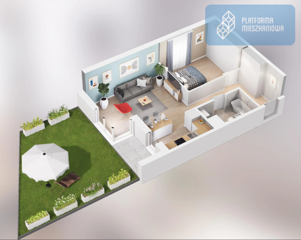 Oferujemy możliwość wykończenia wnętrz w standardzie "pod klucz", zapewniającą oszczędność czasu i wygodę- zdjęcie przedstawia wizualizację wykończenia, mieszkanie oddane w stanie deweloperskim