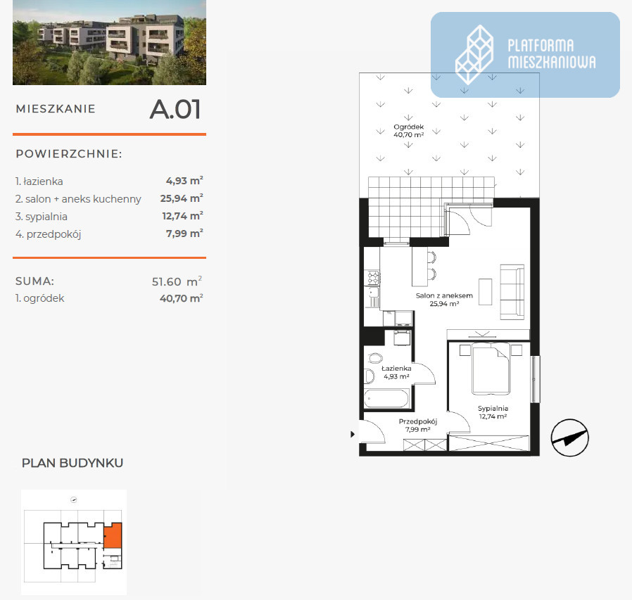 - Powierzchnia:51,60 m2