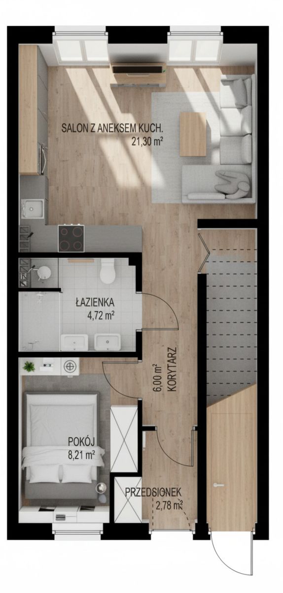 . część dzienna z aneksem kuchennym