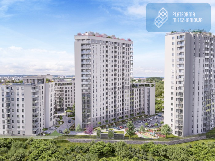 - Na osiedlu: plac zabaw, zielone strefy rekreacyjne na dachach budynków, stojaki rowerowe - bezpieczna przestrzeń do zabawy i spotkań z rówieśnikami