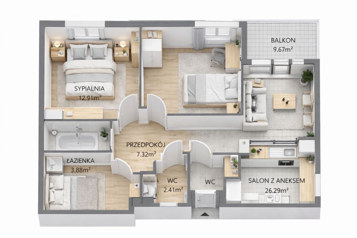. każde mieszkanie z balkonem, loggią lub tarasem