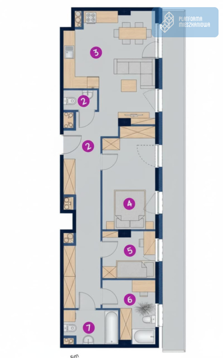 Na sprzedaż przestronne, czteropokojowe mieszkanie o powierzchni 71,18 m², położone na 6 (ostatnim) piętrze budynku w dzielnicy Siedlce w Gdańsku.