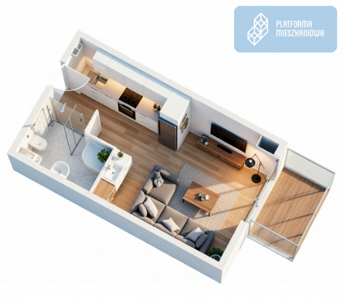 Powierzchnia 26,18 m² z balkonem (4,50 m²).