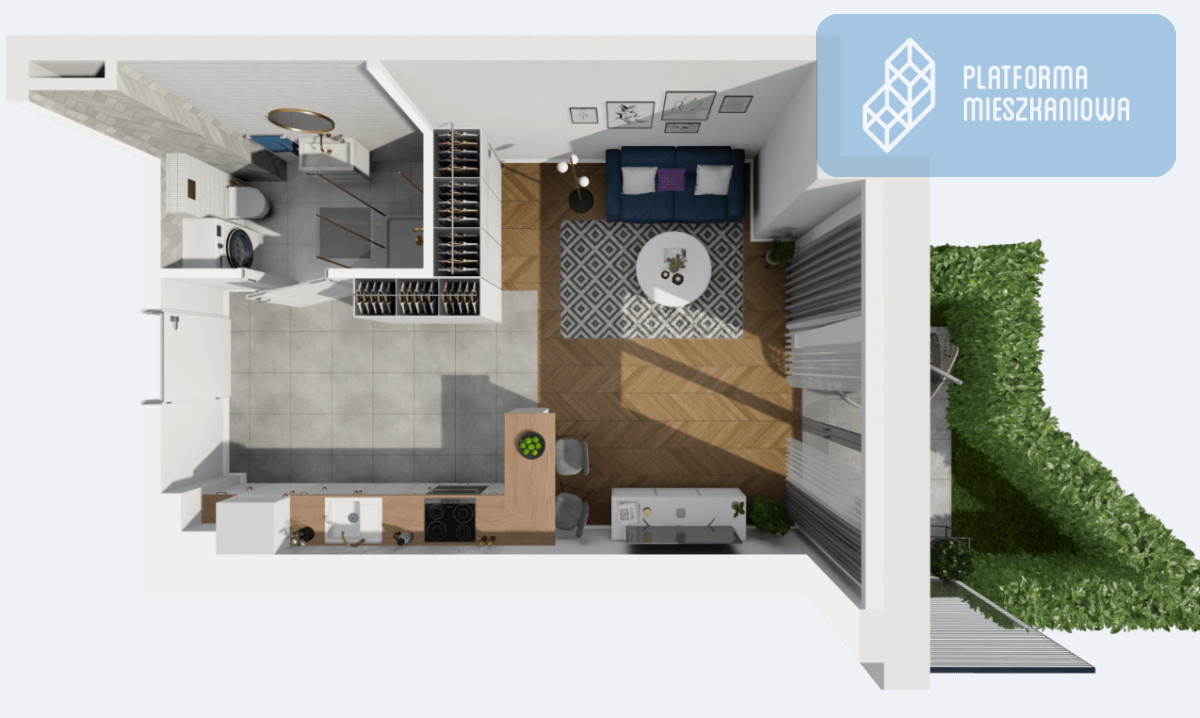 Kompaktowe mieszkanie z tarasem (4,50 m²).