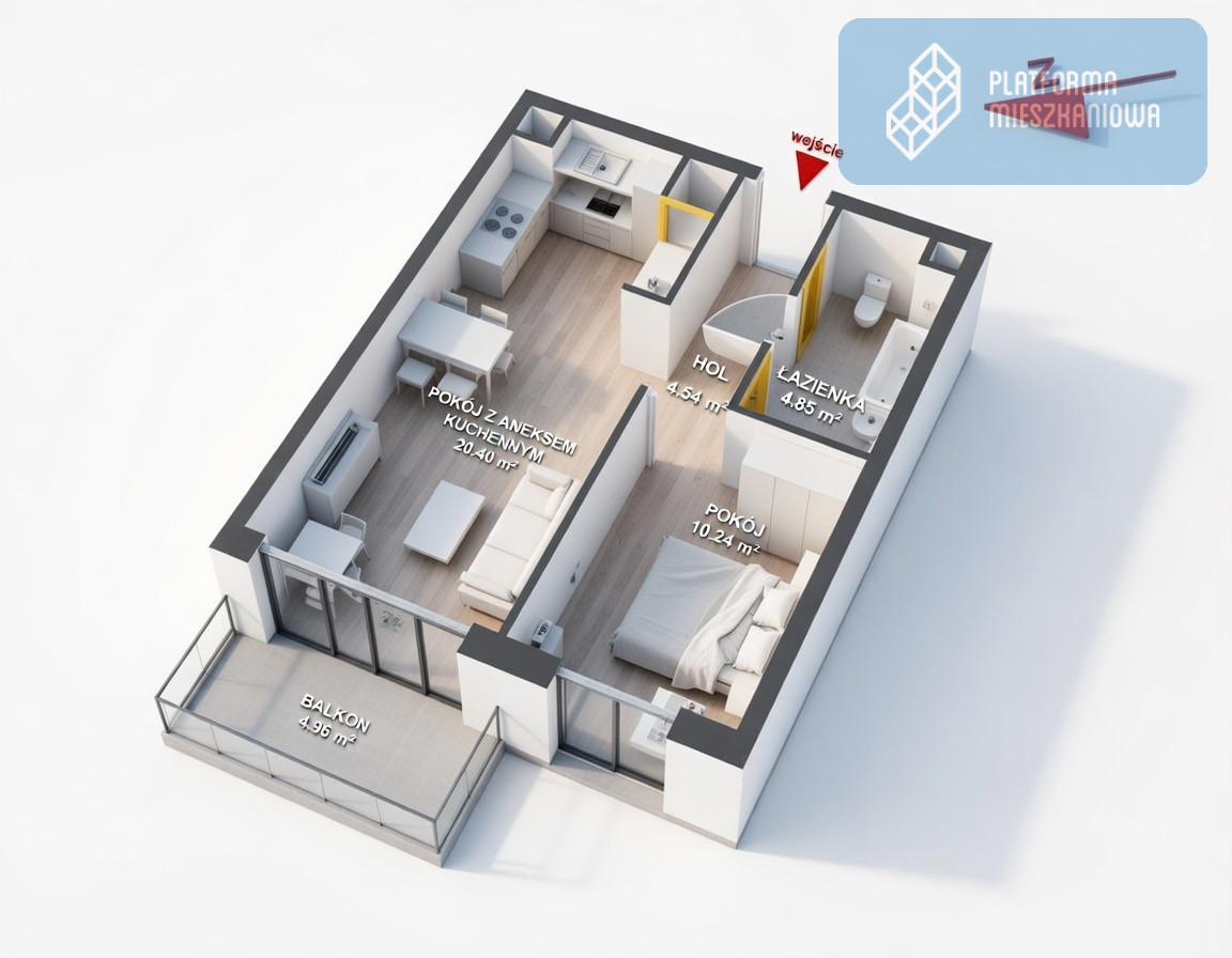 Na sprzedaż dwupokojowe mieszkanie z balkonem na ostatnim 4 pietrze nowopowstałego bloku.