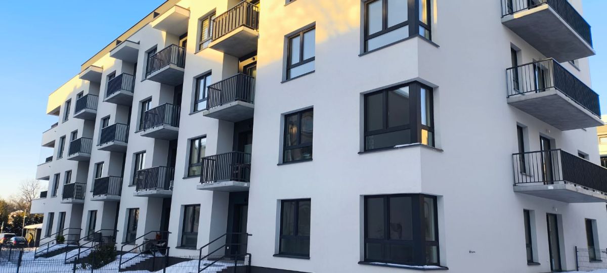 Inwestycja wyróżnia się estetyczną, spójną zabudową - nowoczesne bloki o prostej formie, jasnych elewacjach i eleganckich balkonach.