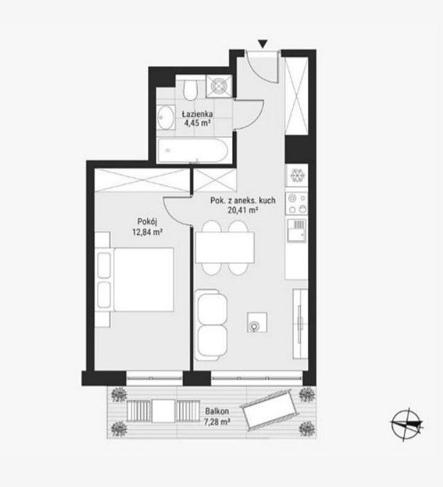 - Salon z aneksem kuchennym - 20,41 m²