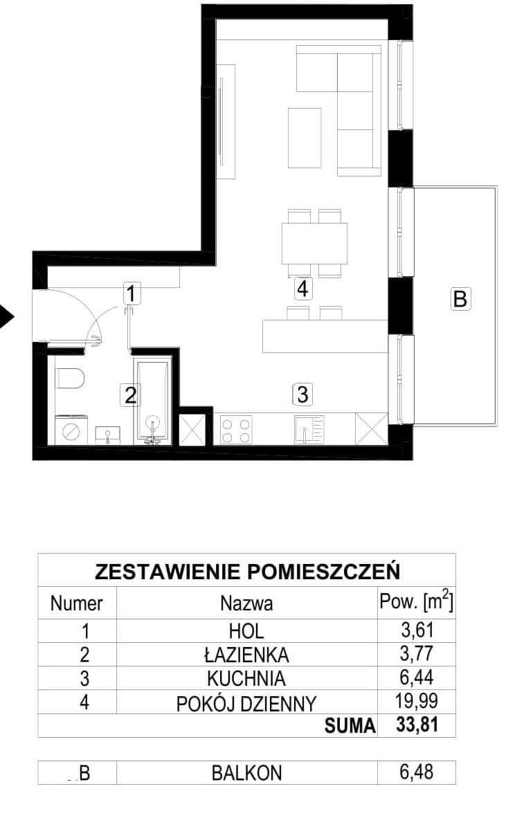 Na sprzedaż kompaktowa kawalerka 33,81 m² - idealna jako inwestycja pod wynajem (krótko- i długoterminowy).