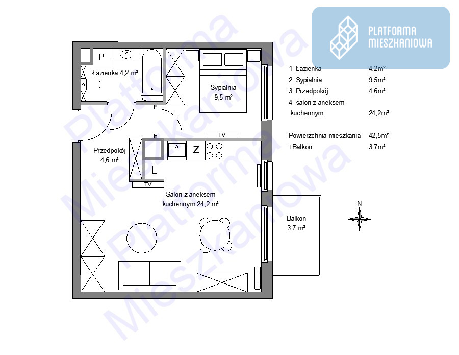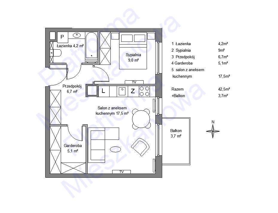- Powierzchnia:42,50 m2