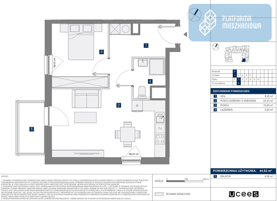 Metraż: 44,83 m2