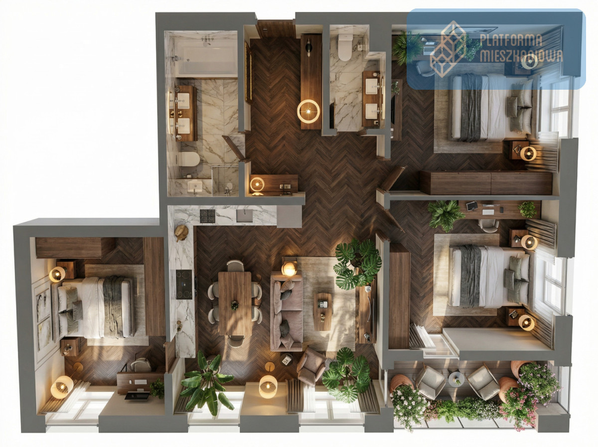 Układ mieszkania idealnie sprawdzi się zarówno dla rodziny, jak i jako inwestycja pod wynajem (również dla studentów lub kadry akademickiej).