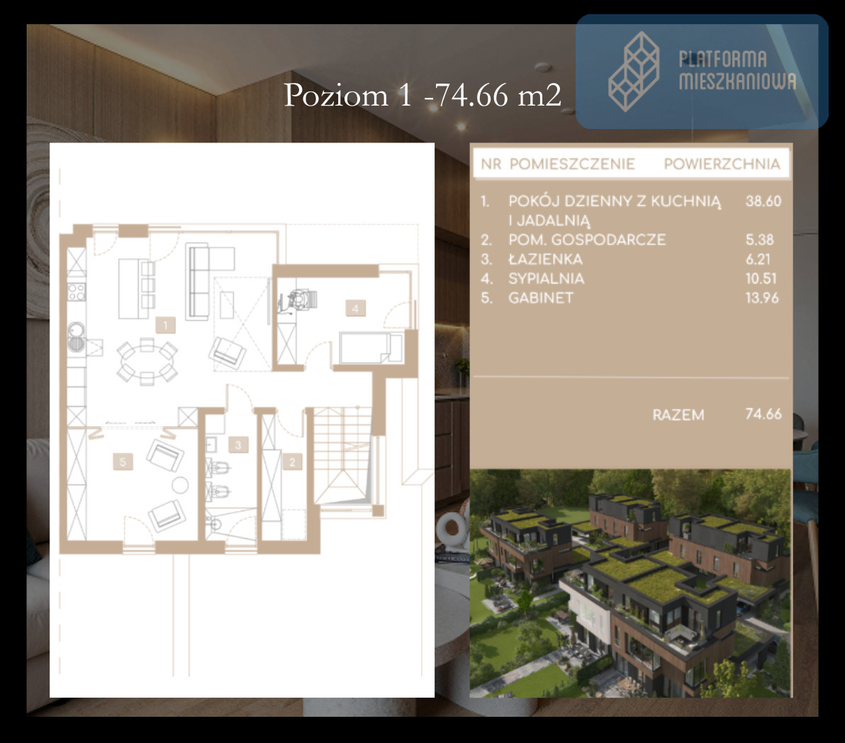 Poziom 1 - 74,66 m2: