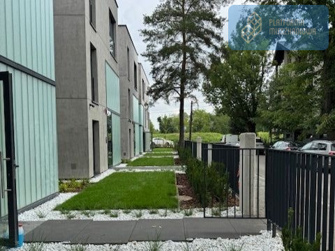 Teren jest w pełni zagospodarowany: estetyczna zieleń z automatycznym nawadnianiem oraz monitoring zewnętrzny.