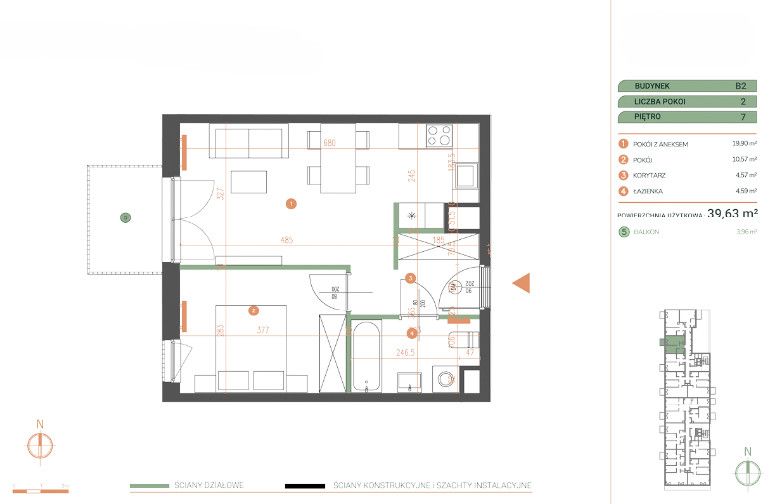 - Powierzchnia:39,63 m2
