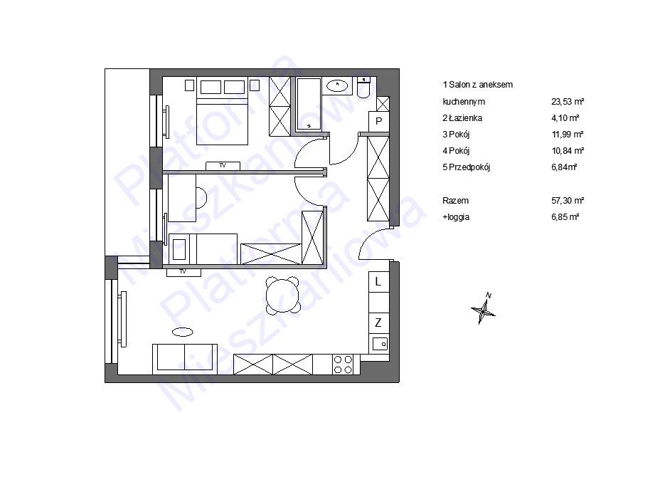 - Powierzchnia:57,30 m2