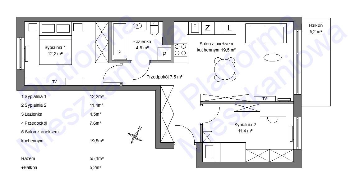 - Powierzchnia:55,14 m2