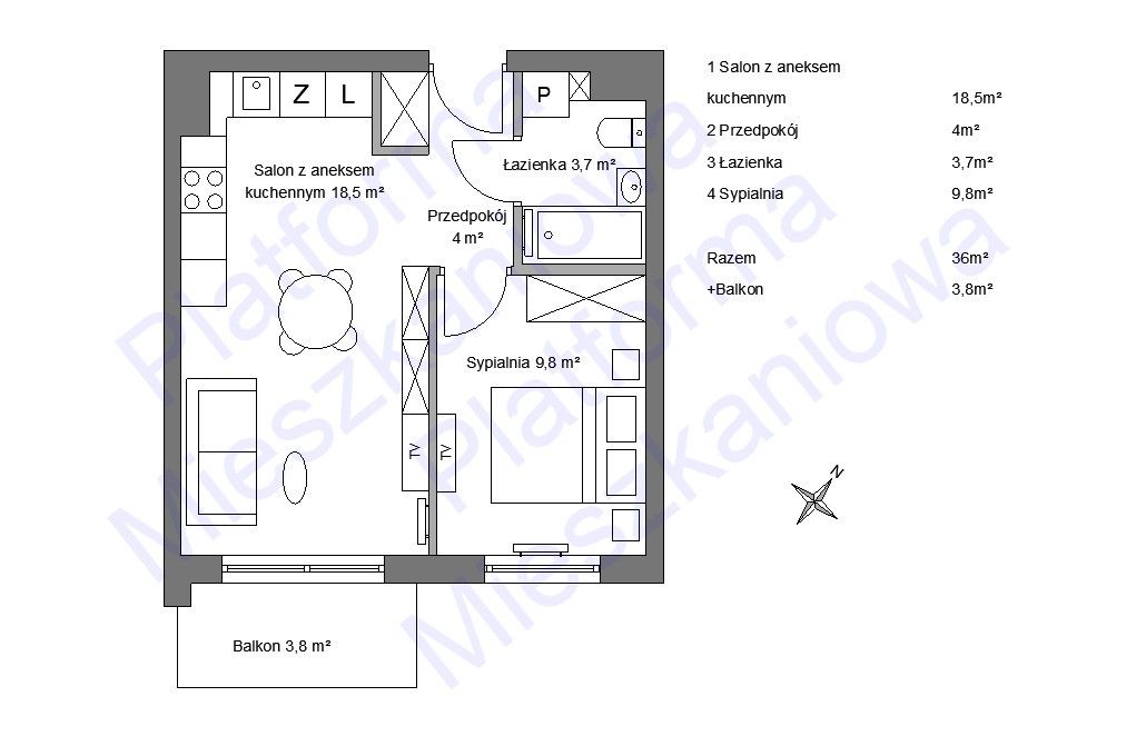 - Powierzchnia:36,05 m2