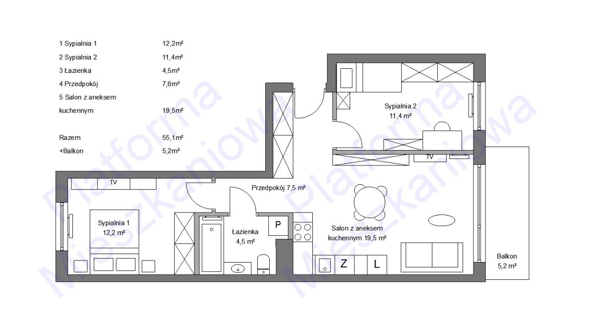 - Powierzchnia:55,15 m2