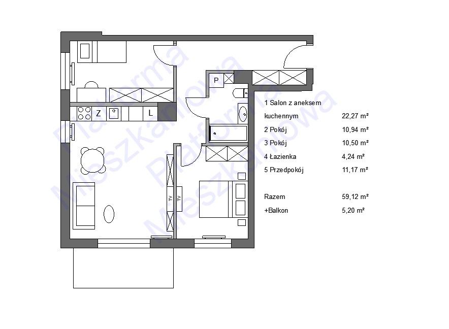 - Powierzchnia:59,11 m2