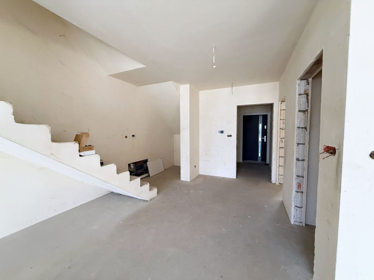 Apartament posiada dwupoziomowy układ, który daje duże możliwości aranżacyjne i pozwala stworzyć funkcjonalną oraz komfortową przestrzeń do życia. Nieruchomość sprzedawana jest w stanie surowym do wykończenia, dzięki czemu przyszły właściciel może zaprojektować wnętrze dokładnie według własnych potrzeb i stylu.