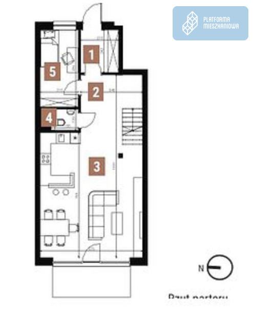 - WC (1.58 m²): Dodatkowa toaleta na parterze zwiększa komfort użytkowania, zwłaszcza dla gości.