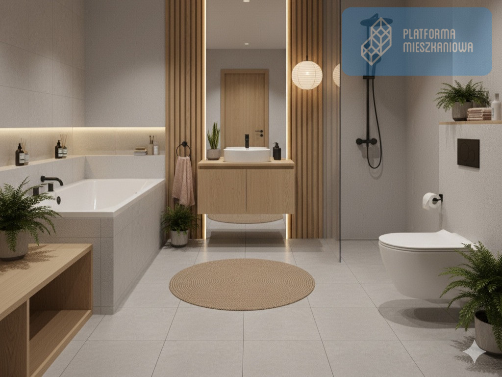- Komunikacja: Szeroki przedpokój z miejscem na szafę wnękową.