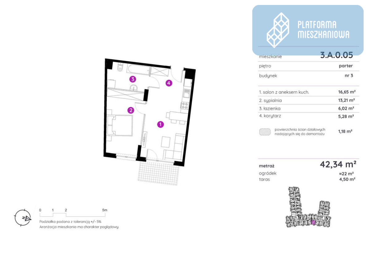Z przyjemnością prezentujemy ofertę sprzedaży funkcjonalnego, 2-pokojowego mieszkania o powierzchni 42,34 m², zlokalizowanego na parterze nowoczesnego budynku w nowo powstałej inwestycji. To idealna propozycja dla osób poszukujących własnej enklawy zieleni w miejskiej przestrzeni oraz dla inwestorów szukających nieruchomości o wysokim standardzie najmu.