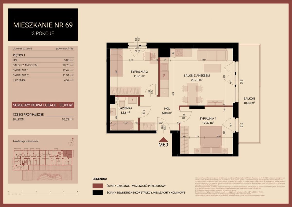 - Powierzchnia:55,03 m2