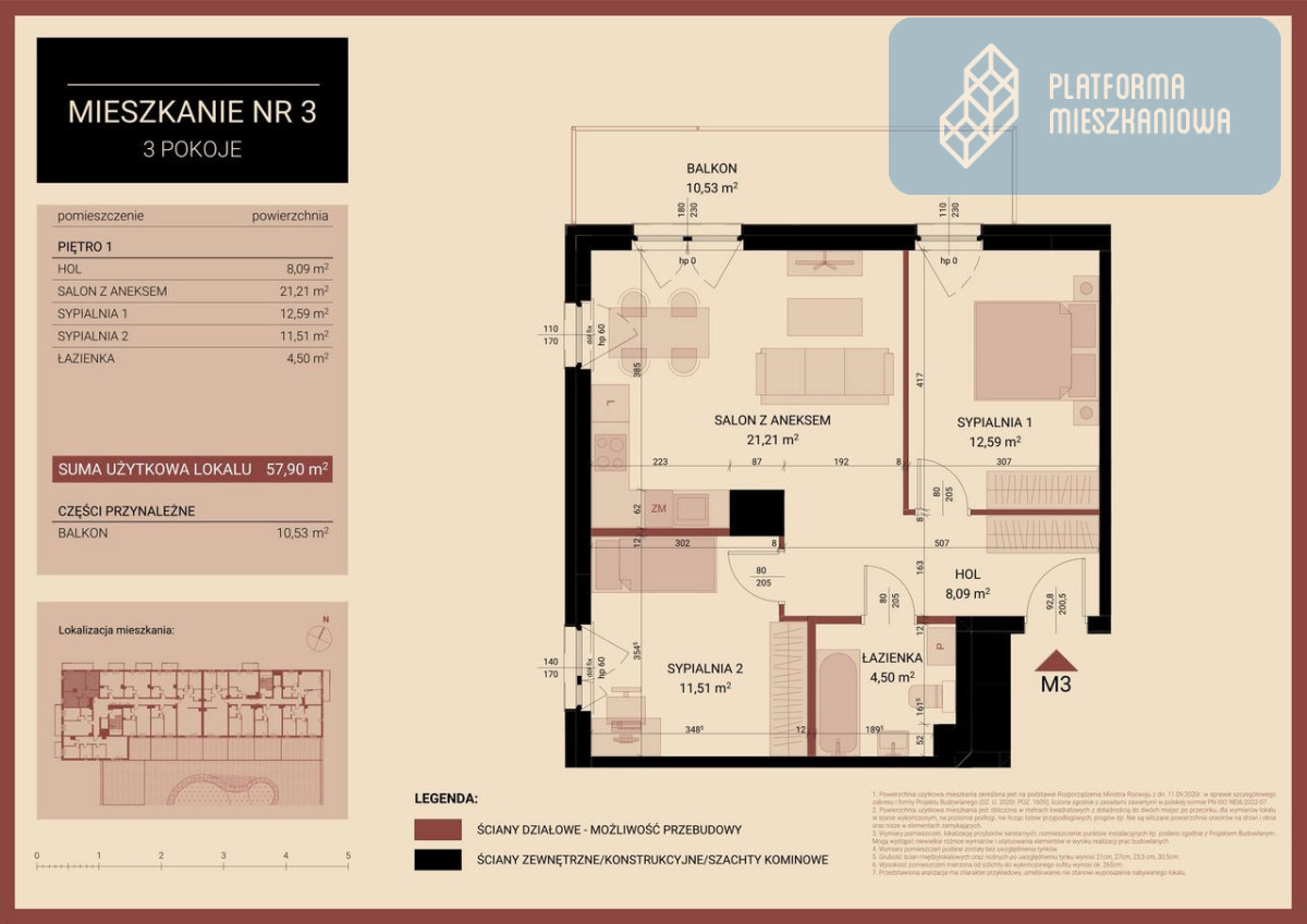 - Balkon (10,53 m²): Imponująca powierzchnia zewnętrzna, idealna na poranną kawę.