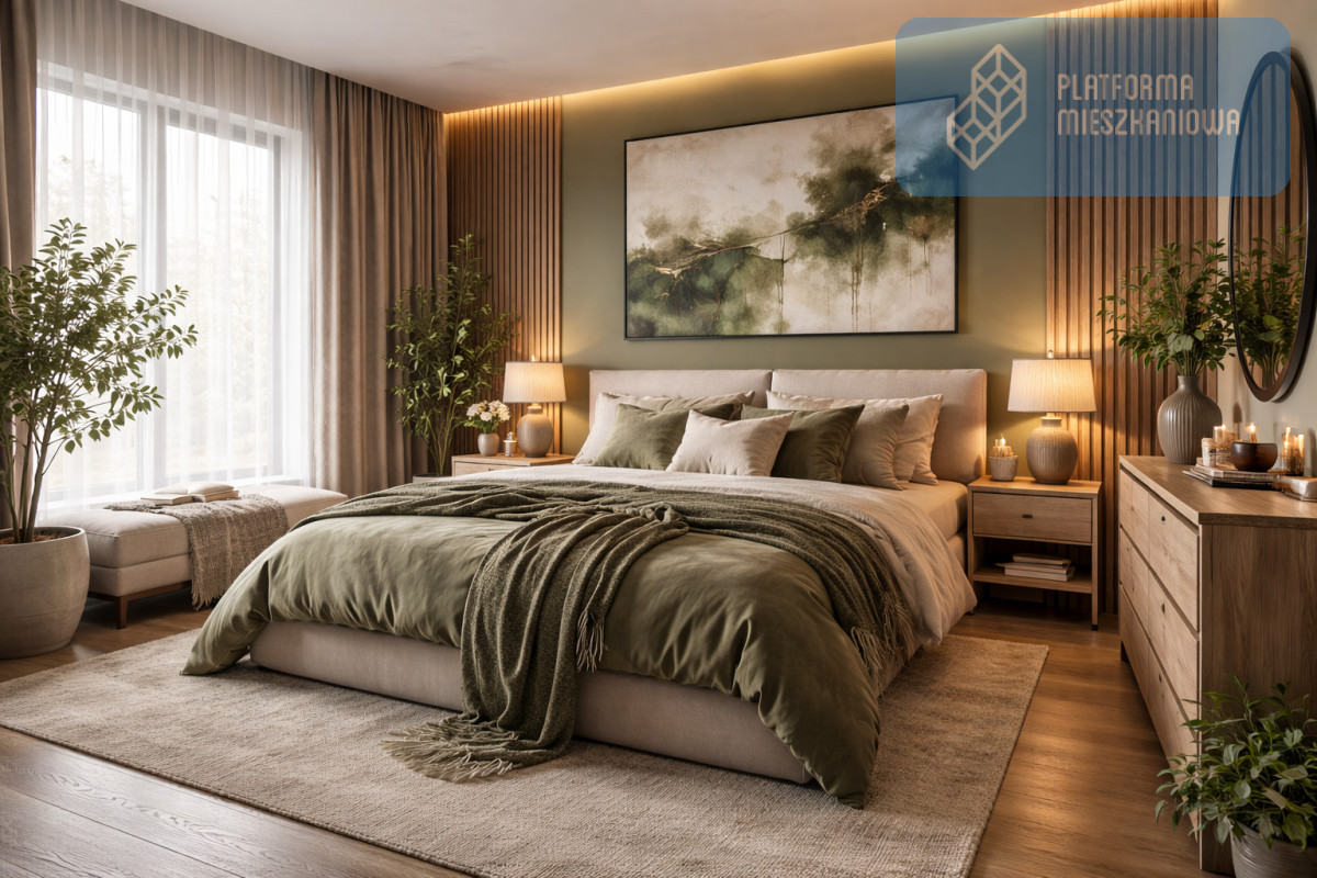 - Sypialnia (12,59 m²): Główna sypialnia z dużą ilością miejsca na szafy wnękowe.