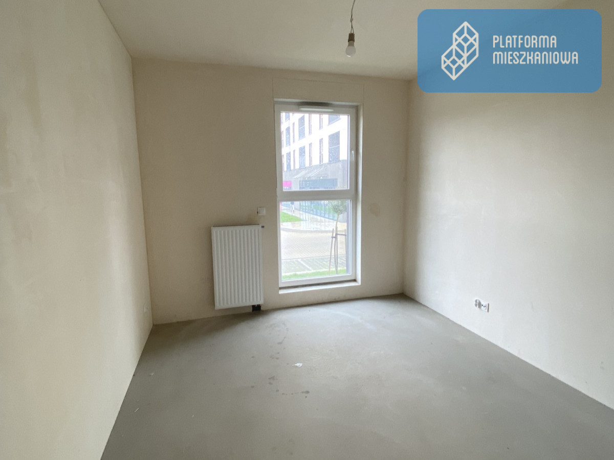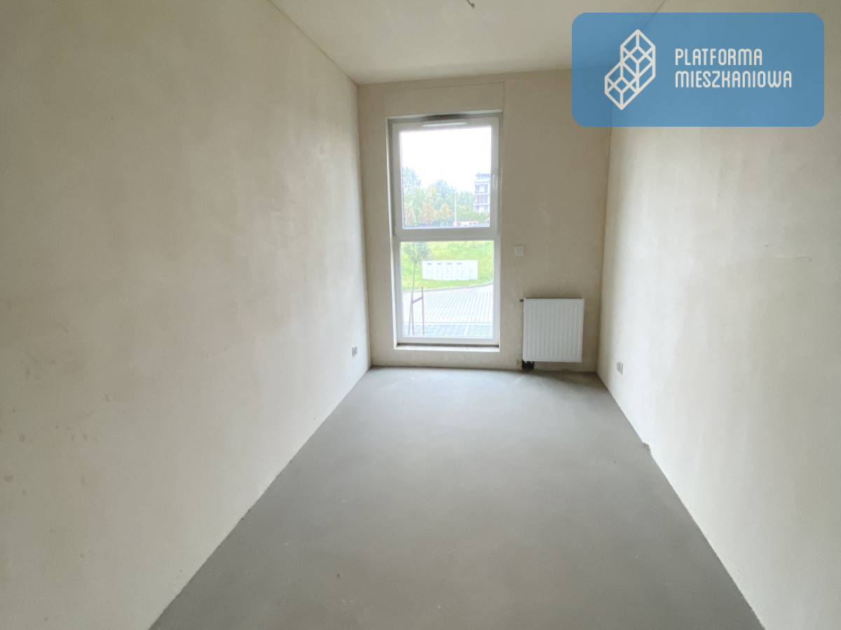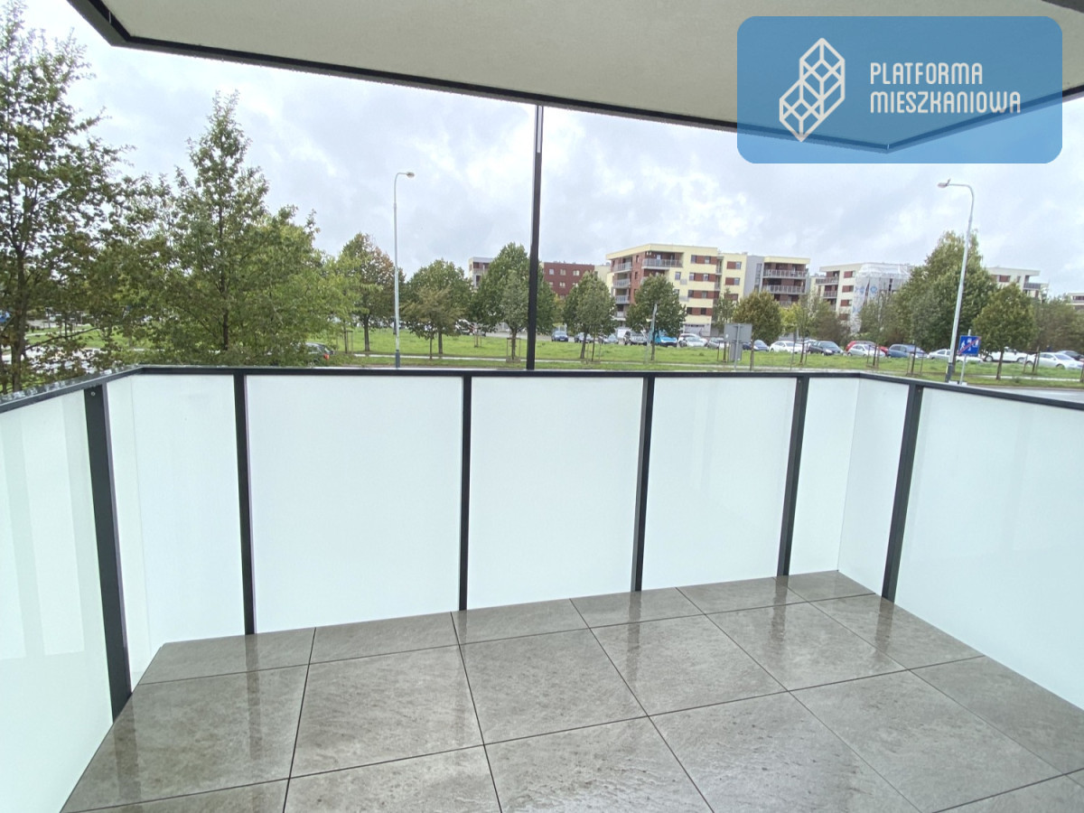 Już od progu widać światło wpadające przez duże przeszklenia i przestrzeń, którą możesz zaprojektować według własnych zasad. Zdjęcie oddaje realny klimat - jasne wnętrze, szerokie wyjście na loggię, zieleń za oknem. Tu naprawdę oddycha się spokojniej.