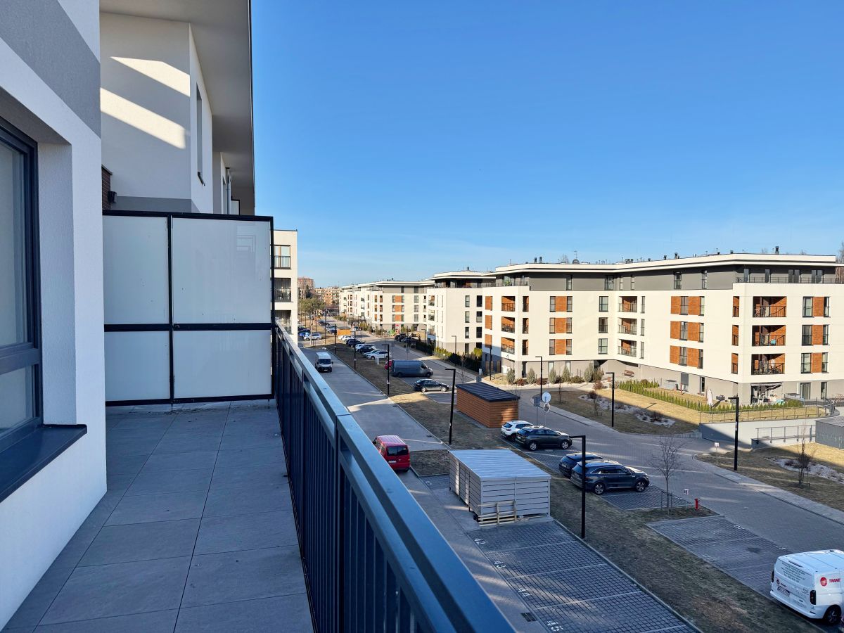 Dużym atutem jest również przestronny balkon, który w cieplejsze miesiące staje się naturalnym przedłużeniem przestrzeni mieszkania. Co ważne, wyjście na balkon znajduje się zarówno z salonu, jak i z jednej z sypialni, co daje dużą wygodę użytkowania i dodatkowe możliwości aranżacyjne.