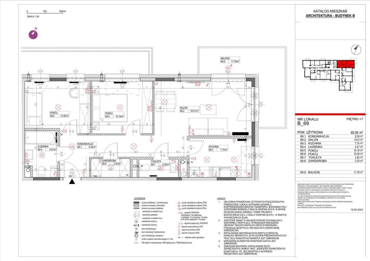 To 3 pokoje o powierzchni 66,32 m², położone na ostatnim, 7. piętrze, z którego rozciąga się spektakularna panorama całej Łódź.