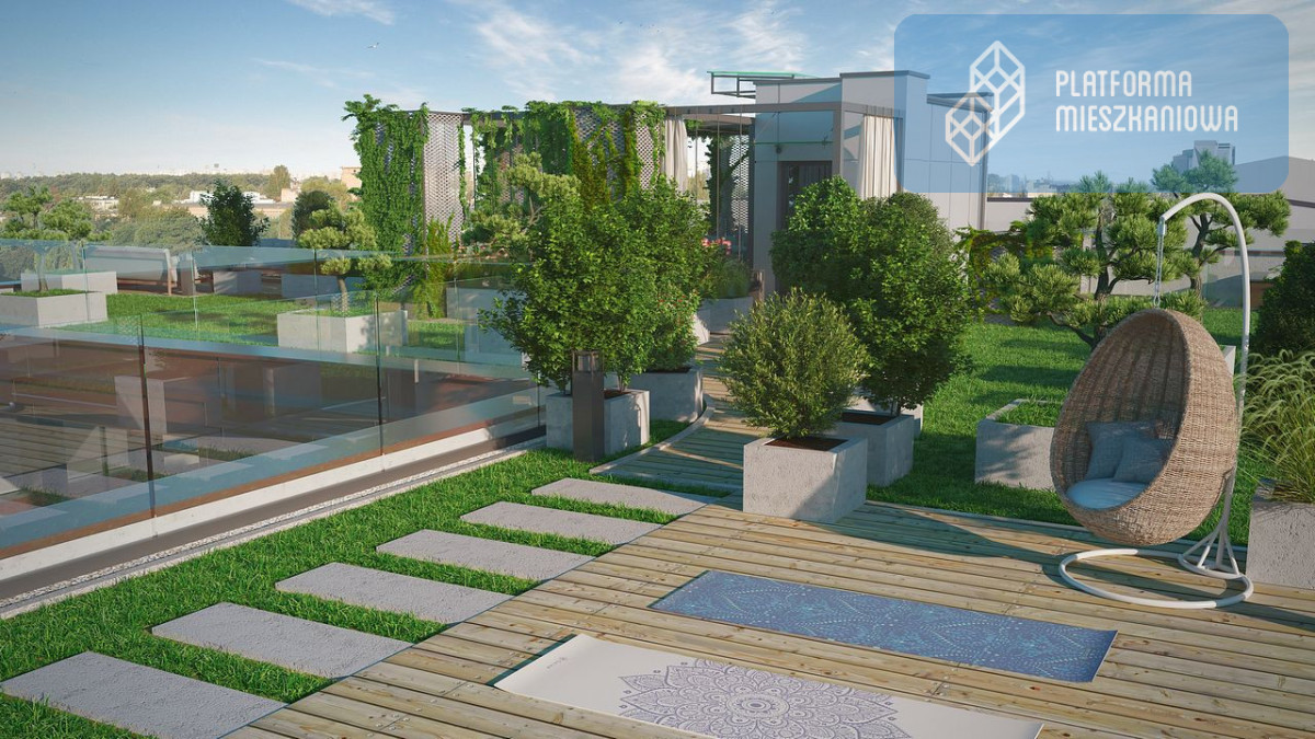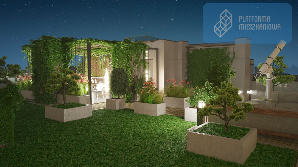 - zielony taras na dachu, z prywatną strefą wypoczynku tylko dla mieszkańców (w tym jauzzi , obserwatorium nieba z teleskopem, kino plenerowe)