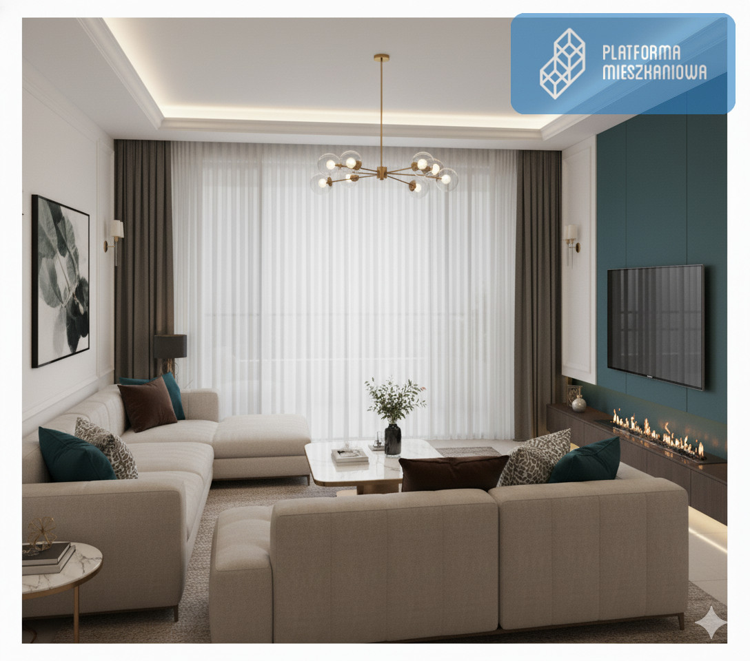 Przestrzeń: Przemyślany układ pomieszczeń sprawia, że apartament jest przestronny i ustawny.