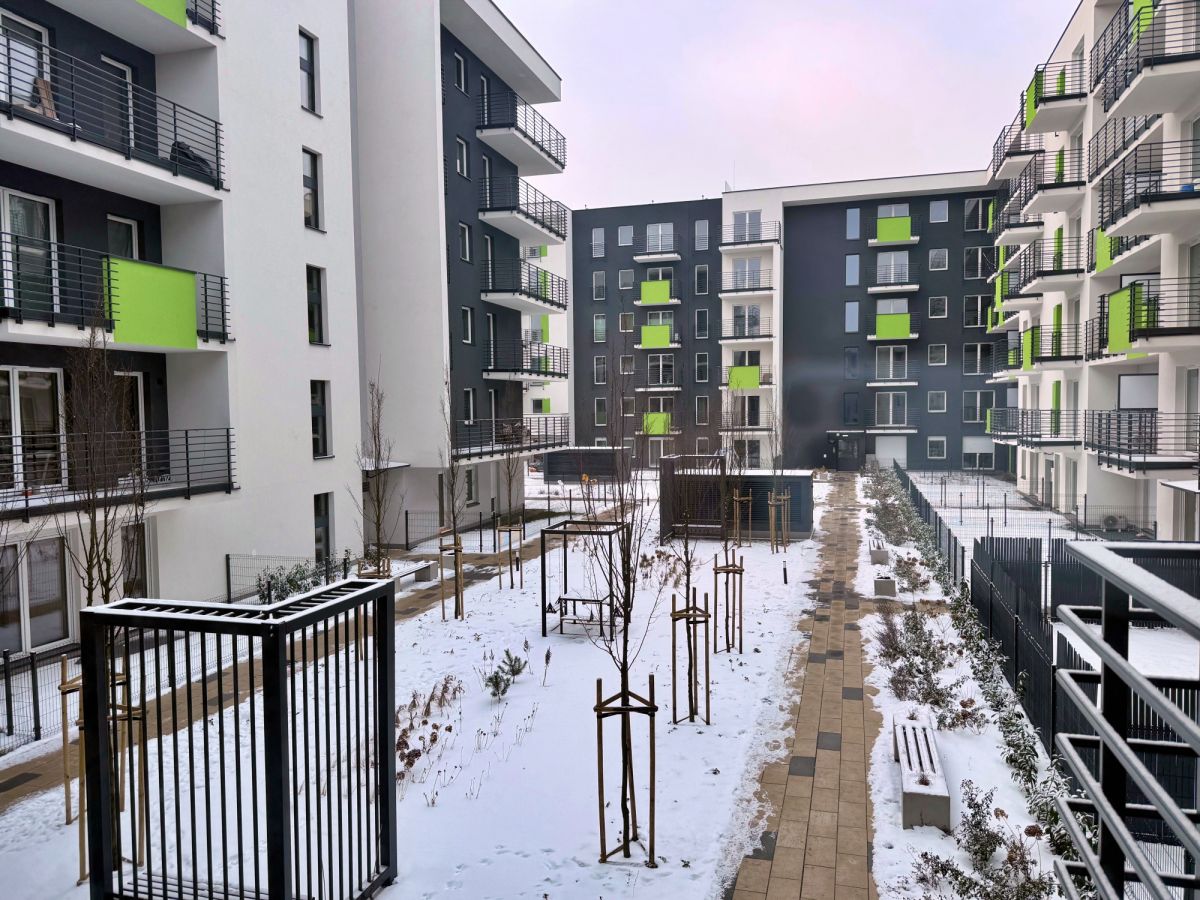 Inwestycja została zrealizowana w formie niskiej, kameralnej zabudowy, co bezpośrednio przekłada się na komfort codziennego życia. Przyjazna architektura oraz duże odległości między budynkami sprawiają, że przestrzeń nie jest przytłoczona, a wnętrza mieszkań mają swobodny dostęp do światła dziennego.