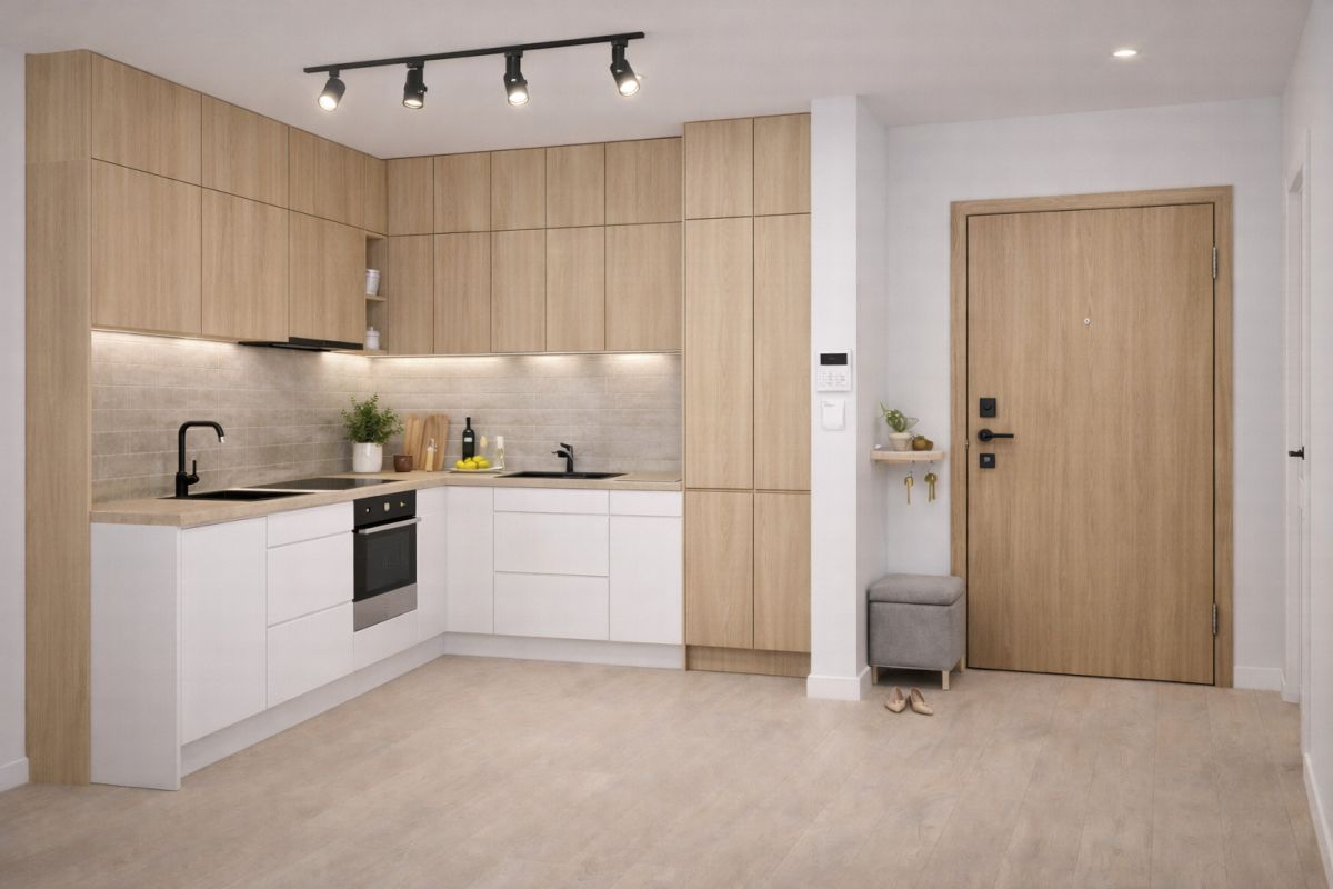 Dodatkowym atutem jest możliwość wydzielenia miejsca do pracy z dostępem do naturalnego światła, co znacząco podnosi funkcjonalność lokalu zarówno dla osób pracujących zdalnie, jak i pod kątem wynajmu.