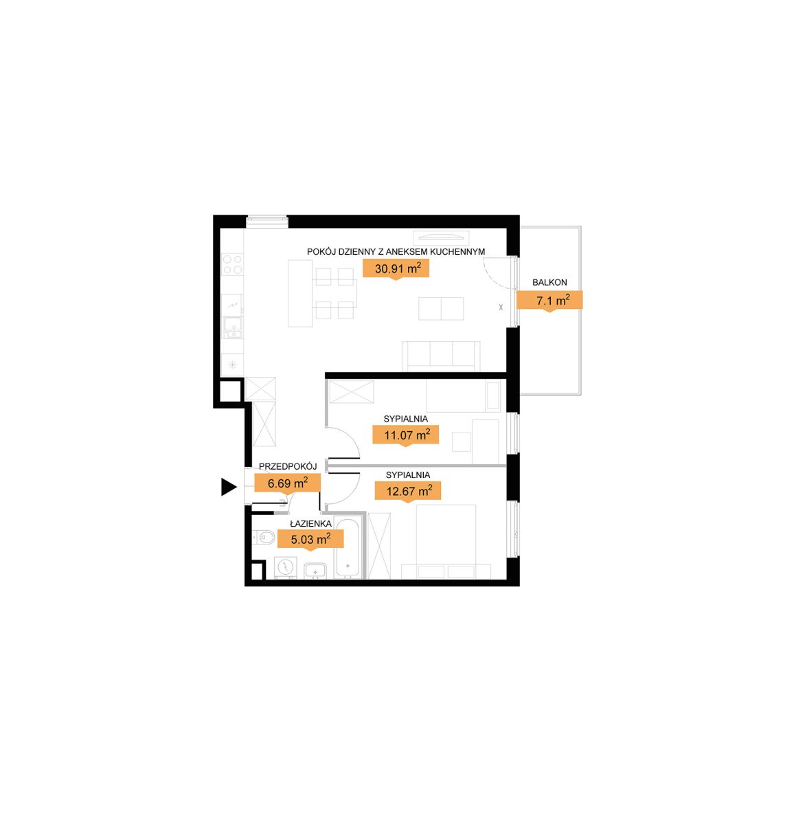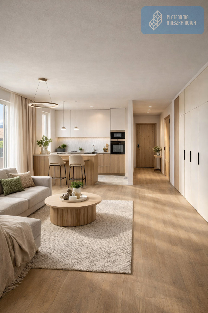 • Przestronny salon z aneksem aż 31 m² - idealny na strefę wypoczynku i jadalnię