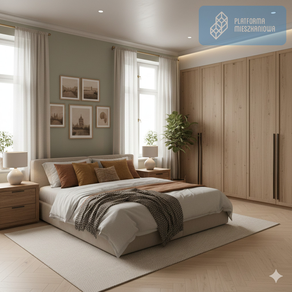 - Sypialnia: 11,08 m² - ustawny pokój z miejscem na duże łóżko i szafę.