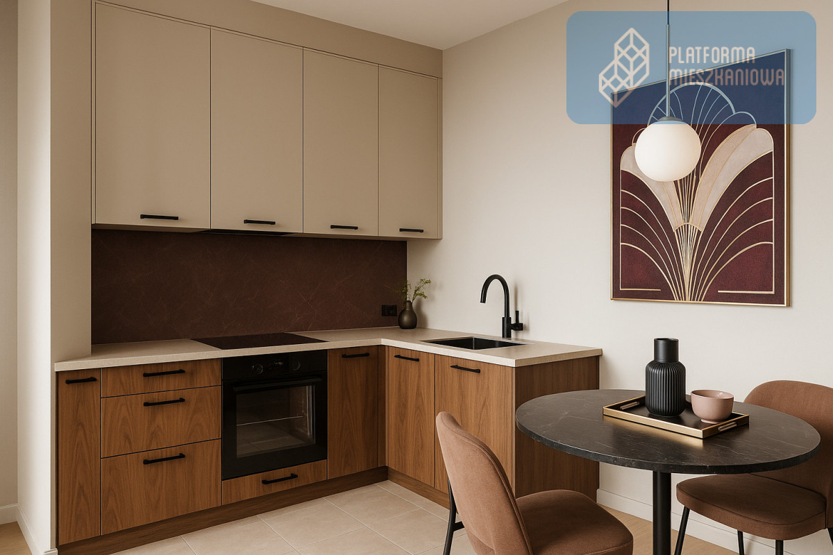 Pierwsze wrażenie to poczucie porządku i harmonii. Układ pomieszczeń jest przejrzysty i przemyślany - mieszkanie prowadzi naturalnym rytmem od strefy wejściowej, przez część dzienną, aż po prywatną sypialnię. Każdy element został ułożony tak, by w codziennym użytkowaniu wszystko „działało” intuicyjnie i bez kompromisów.