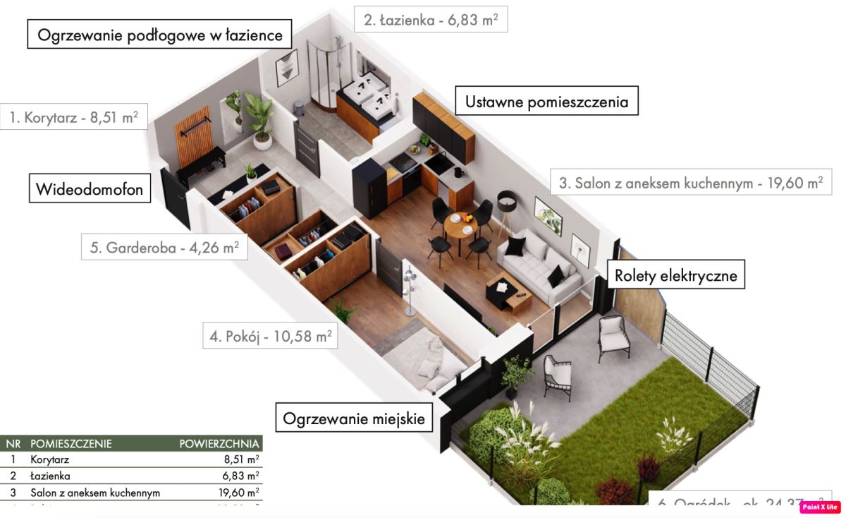 -każde mieszkanie wyposażone we własny taras lub przestronny ogródek