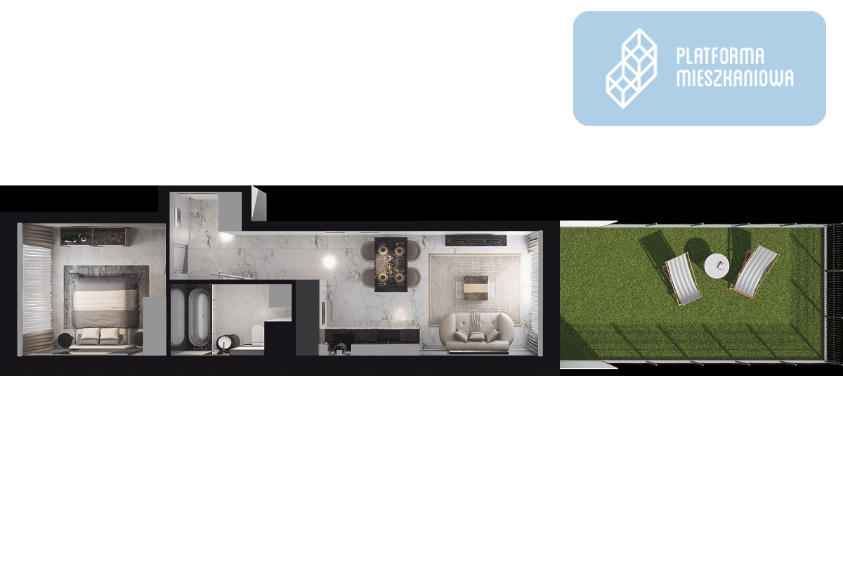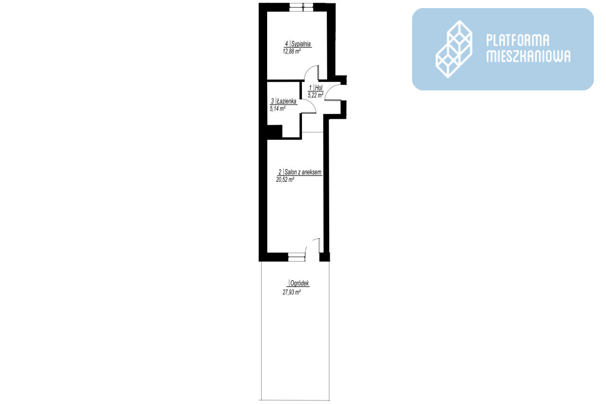 Na sprzedaż 2-pokojowe mieszkanie (43,76m²) z ogródkiem (27,93m2) na na parterze.