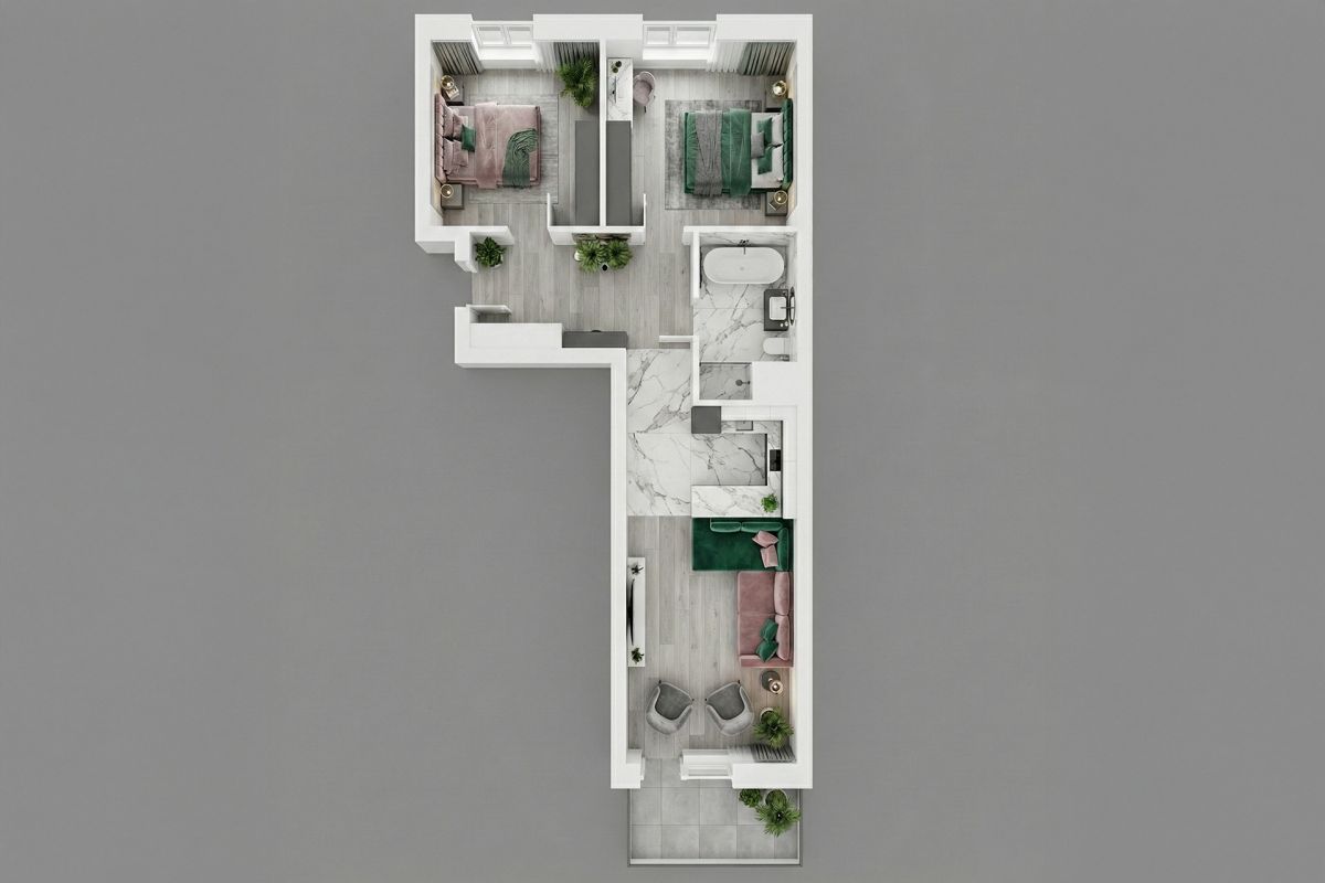 Mieszkanie 3-pokojowe o powierzchni 60,11 m², położone na 2. piętrze z balkonem, zlokalizowane na poznańskim Grunwaldzie.