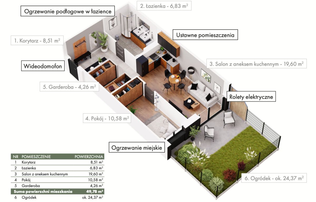 -każde mieszkanie wyposażone we własny taras lub przestronny ogródek