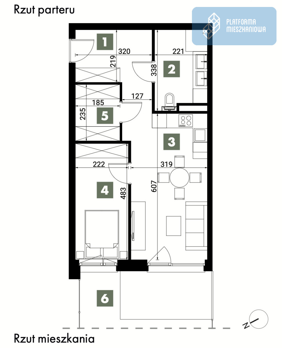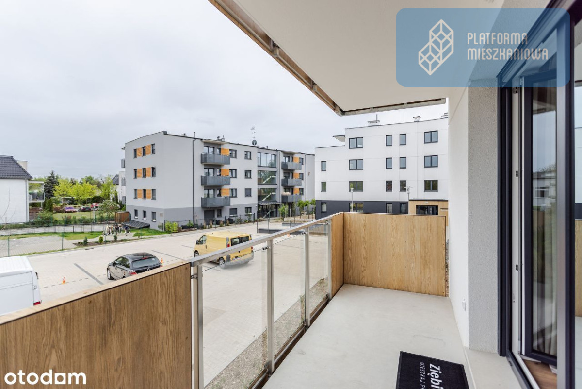 Mieszkanie w stanie deweloperskim, 2 - pokoje z garderobą, znajduje się na parterze. Mieszkanie o bardzo układzie, z salonu wyjście na ogród.